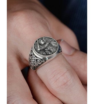 Erzengel Michael Signet Silber Männer Schutz Ring 0975