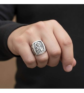Ein eleganter Siegelring aus Silber, der ewige Wahrheit in sich trägt. Das Kreuz, ein Symbol für Opfer und Hoffnung, dominiert die Oberfläche, während die Inschrift „Jesus Christus Sieg“ an den Sieg des Geistes über die Materie erinnert. Ein Schmuckstück, das Glauben mit Ästhetik verbindet, ideal für diejenigen, die ihre Spiritualität auf subtile Weise zum Ausdruck bringen möchten.