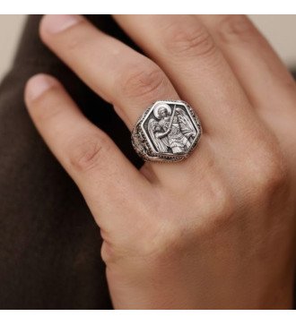 Ασημένιο Χριστιανικό Ανδρικό Δαχτυλίδι Σφραγίδα Με Τον Αρχάγγελο Μιχαήλ 0661