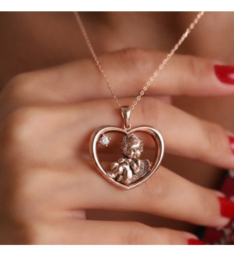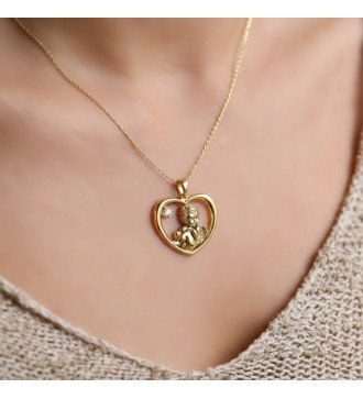 Every new life is a miracle that deserves to be captured in time in the most symbolic way. This exquisite silver heart necklace with a baby angel in yellow gold tone is the embodiment of love, tenderness, and the joy of motherhood. The little angel, intricately carved, rests peacefully within a 25x22mm heart, while a sparkling white zircon adds its own brilliance to the composition. Crafted from high-quality silver, this piece is the perfect gift for a new mother from her husband, from a mother-in-law to her daughter-in-law, or from a dear friend who wishes to honor this unique moment. Every time she wears it, she will remember her baby's embrace and the priceless love that accompanies her on this journey. A jewel that speaks to the heart and lasts forever.
