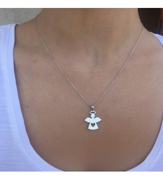 Looking for a gift for a woman who has given birth? This silver heart necklace with a baby angel and white zircon is the ultimate choice. Made with high-quality white plating, dimensions 25 x 22 mm, it combines elegance and deep symbolism. Ideal gift from husband to wife after childbirth, from mother-in-law to daughter-in-law to celebrate the birth of the grandchild, or from a friend who wants to express her joy. The little angel symbolizes innocence and protection, while the heart represents the endless love of motherhood. Add this special women's jewelry to your collection or give it to someone you love. It pairs perfectly with any style and occasion. Delivery in elegant gift packaging, ready to touch the heart!