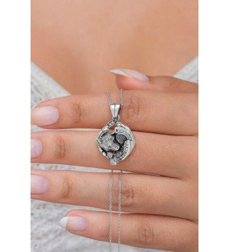 Upgrade your style with this sophisticated women's necklace made of 925 silver in white plating. With a diameter of 40x40 mm, it captures the profile of a woman, decorated with artistic curves reminiscent of elegant waves. Its design harmoniously combines minimalism and refinement, making it ideal for any look, from the office to a night out. A piece of jewelry that is not just an accessory, but a small statement of personality and style.