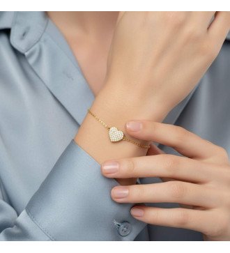 Bracciale a cuore in argento con zircone bianco e doppia catena d'oro 0019K