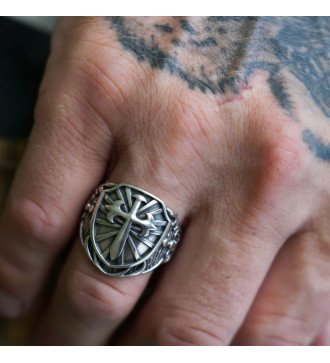 Symbolische herenring 925 met een kruis in de vorm van een zwaard en een schild 0045