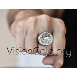 De Ultieme Ring Met Leeuwzegel Gesneden In Zilver 925 - Herenringen Visiongold.Org® 0727