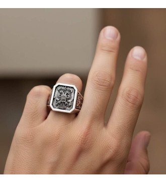 De St. George zilveren ring is meer dan zomaar een sieraad - het is een tijdloos verhaal over moed en geloof. De ring is handgemaakt van 925° sterling zilver en heeft een reliëfafbeelding van Sint Joris die de draak verslaat, een symbool van overwinning, bescherming en moed. Met een diameter van 20 mm en een rijke metallic glans, toont de ring de kracht van karakter en innerlijke discipline van de man die hem draagt. Een ideaal cadeau voor jezelf of voor iemand die de heiligheid van traditie waardeert, deze ring verenigt spiritualiteit met mannelijke elegantie. Een authentiek sieraad dat gemaakt is om de tand des tijds te doorstaan en elk moment te inspireren.