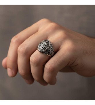 Maak je klaar om de ultieme mannelijkheid en aura van mysterie te voelen. We presenteren je een meesterwerk van zilversmeden: een sterling zilveren herenring die kunst en symboliek combineert. De centrale, ovale vorm van de zwarte onyx voegt diepte en zwaartekracht toe, terwijl het ingewikkelde detail van de meander eromheen verhalen van de Griekse beschaving fluistert. De afmeting van 20 mm maakt het een statement stuk, een symbool van kracht en onstuitbare geest. De reliëfafbeelding van de adelaar met vleugels aan de zijkant benadrukt de kwaliteit en aandacht voor detail, en nodigt je uit om hoog te zweven. Deze ring is niet zomaar een sieraad, maar een link naar de geschiedenis en een weerspiegeling van je eigen moed. Neem geen genoegen met het gewone. Kies voor elegantie die de tijd doorstaat. Koop dit unieke sieraad nu en maak er je eigen amulet van kracht van!